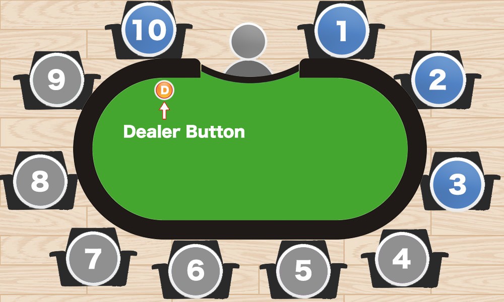 Blind:盲注,除了前注外,位于庄家左手第一个、第二个的玩家必须依照规则进行下注(庄家左手第一个为小盲,左手第二个为大盲,小盲通常是该牌局的注额下限,而大盲则是小盲的两倍)。